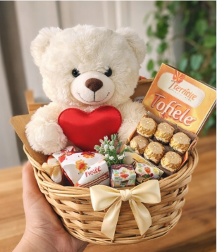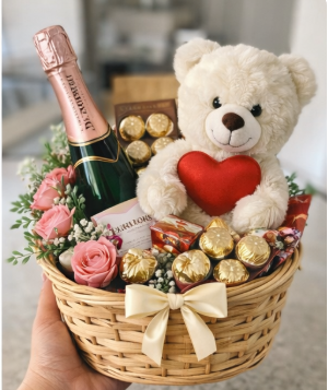 Cesta Romântica com Pelúcia e Chocolates